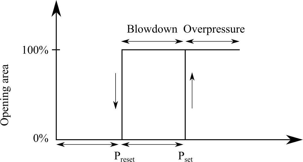 The below example is a calculation where a methane filled cylindrical flat-end vessel is subject to a back-ground heat load from a jet fire. The background heat load is given by the general Stefan-Boltzmann fire equation and heat load according to the Scandpower guideline [HS04]. In addition to this for the post calculation of rupture according to the von Mises stress criterion as outlined in (see the relevant section). The discharge model is specified as relief, in this case the pressure is allowed to increase, until the relief valve set pressure is reached. From this point the pressure is kept constant and the required relief rate in order to keep the pressure constant is calculated. This method only works in case a heat load is applied.