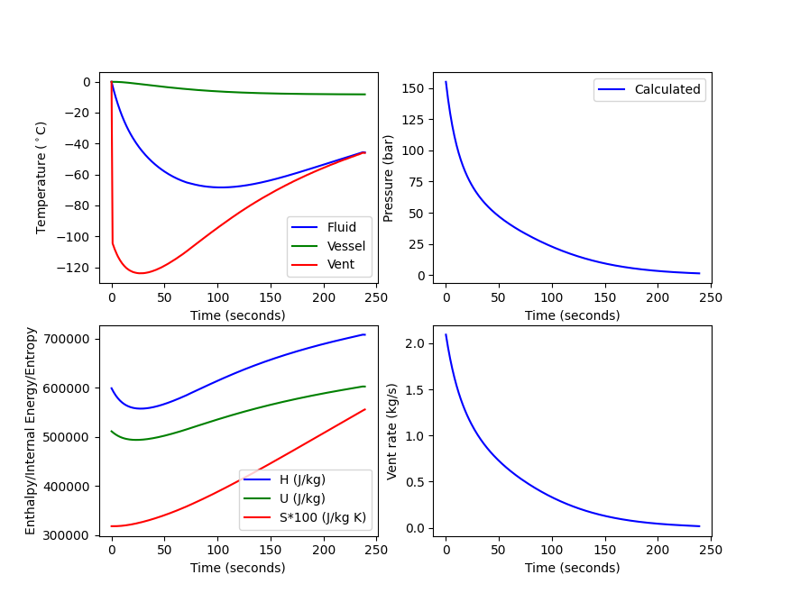 In the latest revision 1-D transient heat conduction through the vessel wall is now an option if required for low thermal conductivity materials and e.g. type III/IV vessels. The 1-D heat transfer model is fully integrated with fire heat load calculations (Stefan-Boltzmann method) and two-phase flow scenarios. Rigorous two-phase single component calculations are supported implementing an equilibrium assumption i.e. gas and liquid phase are in thermal equilibrium, although the vessel wall in contact with gas and liquid, respectively, is allowed to differ in temperature. For two-phase systems, the 1-D model solves separate heat conduction problems for the wetted (liquid-contact) and unwetted (gas-contact) wall regions.